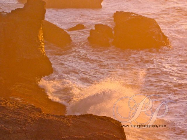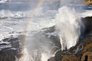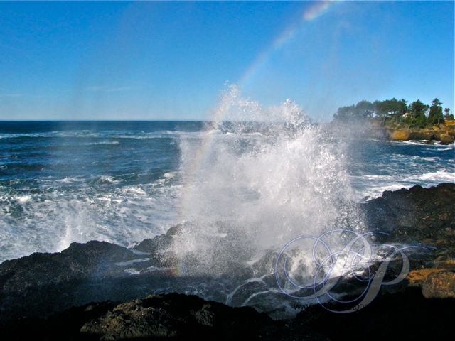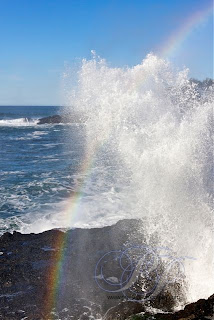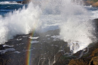 Meg and I took Jasmine, our Chinese student, back to Eugene this past Saturday. She is doing well, studying for her Masters degree in Accounting at the University of Oregon. Meg and I then traveled west to the beach town of Florence. From there we went north, stopping for a wonderful sunset at Seal Rock. We spent Saturday and Sunday nights in Depoe Boe, a delightful small harbor on the central Oregon coast. The water spout pictures are from the breakwater at Depoe Bay. You stand in the parking area, where just below the waves crash and thunder against the rocks. You could not be any closer to the power of the Pacific Ocean than this. In January, the angle of sun at mid morning creates a rainbow in the spray of the blowhole, as the storm driven, high tide waves, crash into it. Meg and stood transfixed in awe for most of the morning watching this synthesis of power and beauty.