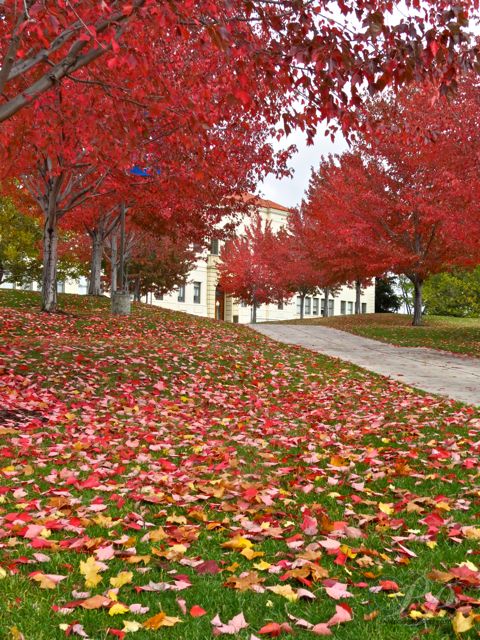 The best fall colors in eastern Oregon are found on the campus of Eastern Oregon University (EOU). The campus commands outstanding views of hills and mountains on all sides. The grounds are exceptionally well maintained, and the campus “fits” like a warm family home. In the fall, the trees clothe themselves in reds, oranges, yellows of different hues and shapes. One could not find any better setting for a college campus!