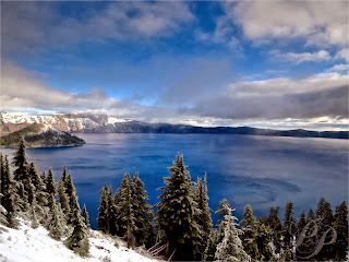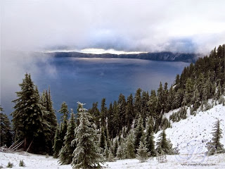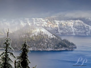 The first snowfall transformed Crater Lake and Wizard Island into a magical kingdom that only snow and light can create. The skies cleared in the early morning, and Meg and I were deeply draw into the lake’s incredible silence and serenity.